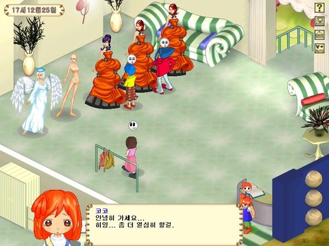 디자이너게임!!!!!!잡지로 그때그때 유행하는 트렌드로 원단과 코디제품을 사서 옷을 만들어 판매하는 게임이었죠 귀한 원단과 재료를 얻기위해서 다른 마을도 사냥도 가고 단체주문을 받아서 바쁘게 옷만들고..ㅋㅋㅋ아마 이 회사에서 인테리어 게임 써니하우스,동물들의 치료하는 의사??같은 게임 스위키랜드를 만들었을거예여..(확실하지는 않아요..)