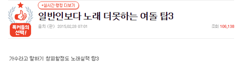 특정 가수들의 노래실력을 폄하하고자 하는것이 아닙니다 저는 저 두 가수분들 어느쪽의 팬도 아니구요 두분 모두 가수로서 이룬 업적이 있고 대중이 그들의 노력을 쉽게 폄하해서는 안된다고 생각합니다 또 많은 분들이 저와 같은 생각을 가지고 있음을 알고 있습니다