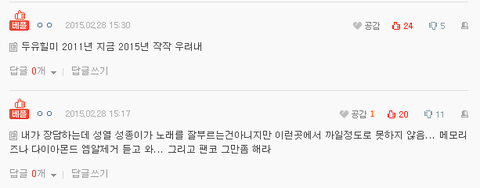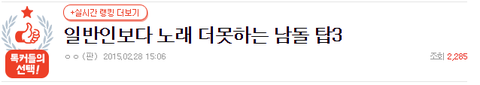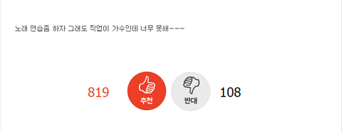 위에꺼는 여돌판 추천수 밑에는 남돌판 추천수ㅋㅋㅋㅋㅋㅋ 아무리 남돌판이 엑소 팬코가 작성한글이라고 해도 여돌판을 추천한 사람이 무려 819명이나 된다는걸 알수있음 그에 비해 남돌판은 반대가 찬성에 비해 압도적인 편임