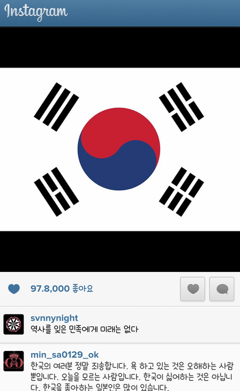 태극기사진 올리고 일본인한테 욕먹는 써니