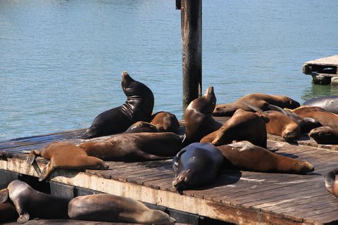항구 pier 39쪽으로 가면 진짜 사람 몸집만한 바다사자 바다물범들이 이렇게 올라와서 햇볓을 쬐고있다.