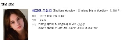 할리우드 라이징 스타 쉐일린 우들리