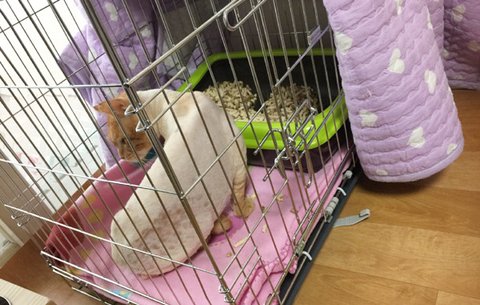 우선적으로 철장에서의 적응을 시작하였네요.