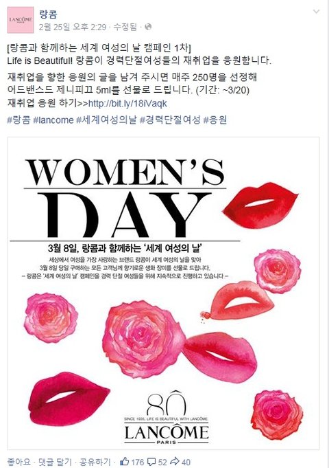 세계 여성의 날이라고 경력 단절 여성 응원하는 캠페인 하네요!