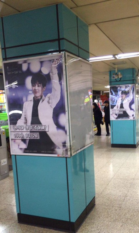 잠실역에 시우민 생일광고 새로 떴어욤~