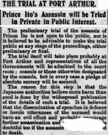 당시 일제가 안중근 의사에 대해 극형을 내리기 힘들 것이라는 전망을 한 기사도 눈길을 끈다. 영국 지배하의 싱가포르에서 발행된 아시아 최대의 영자신문 '더 스트레이트 타임스'는 이토 저격 두달 후인 1909년 12월21일 보도에서 "저격 재판이 대중의 관심에도 불구하고 비공개로 열린다"며 "당사국 대표들은 재판정에 입장이 허용되지만 모든 과정은 철저히 비밀에 부쳐질 예정"이라고 전했다.