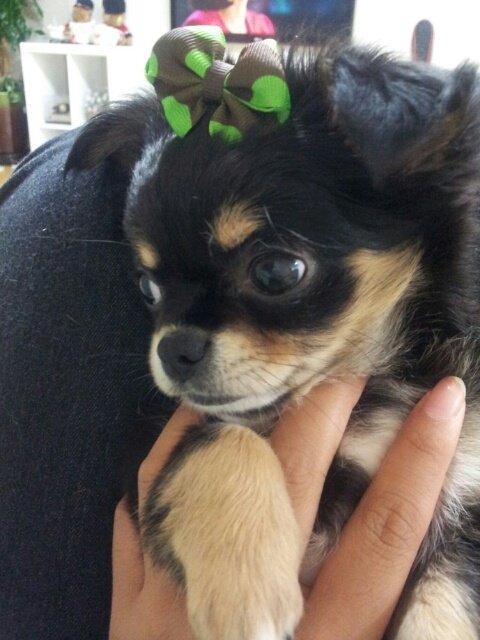 이웃분들이 우리 모모한테 선물 준 리본이에요^^!!! 털이 많이 자라지 않기때문에