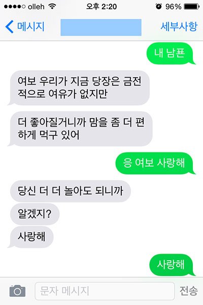 그런데 오늘 점심때 쯤 남편에게 문자가 왔어요.