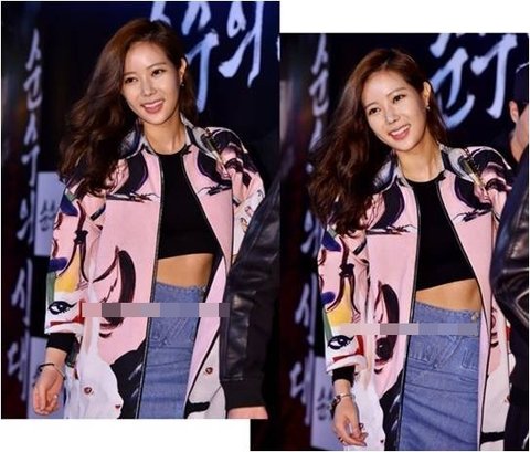 화려한 코트에 체인 클로이백 딱! 메고 크롭탑으로 복근까지 수줍게 노출했는데 ㅎㅎㅎ