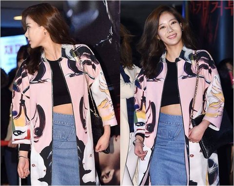 화려한 코트에 체인 클로이백 딱! 메고 크롭탑으로 복근까지 수줍게 노출했는데 ㅎㅎㅎ