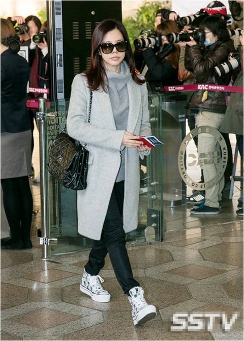 패셔너블한 룩에 컨버스 스니커즈로 심플하게!