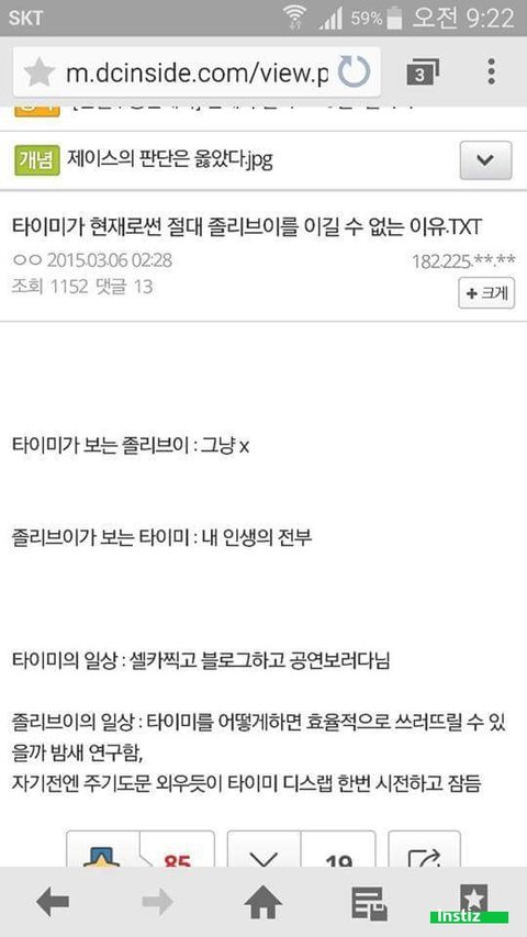 졸리브이 진짜 재수없게 느껴지네 타이미가 어떤상황에 처했었는지 몰랐을땐 그냥 그랬는데 알고보니까 졸리브이 짜증나네 뭘해도 비웃고 ㅋㅋ 타이미 뭔가 불쌍해보여 엄청힘들때 쌩판 모르는애가 수건이니 창녀니 욕했으니 저런반응 보일만하지