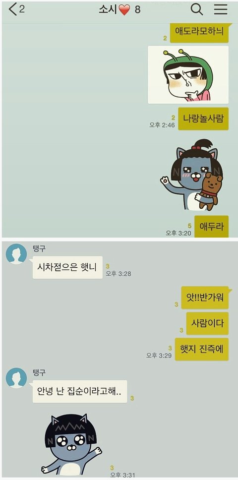 진짜 뭔가 친구도 끼리끼리논다는게 맞는거같애..앙ㅇ아앙ㅇ아친구들보고시퍼(여기 거의 모든애들이 애교를 씀..단답쓰는애가업서 그나마맞는애랑노는겨ㅜㅜ)