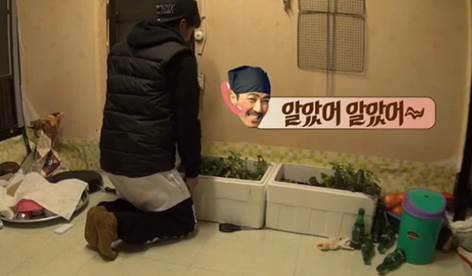 정우는 돼지 멱따는 소리를 내며 바퀴벌레 잡고, 호주니가 휴지로 치우고 ㅋㅋ