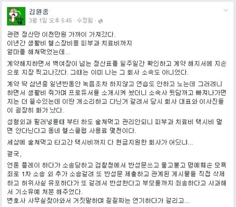 3월 1일 페북글이고 지금도 원본 올라와있음 오늘캡쳐했음ㅇㅇ