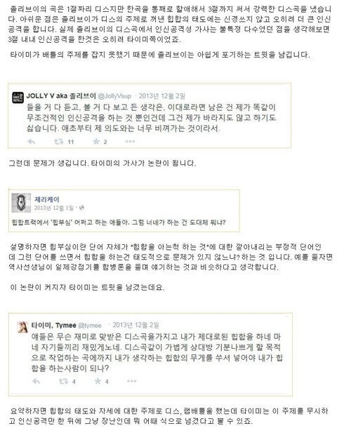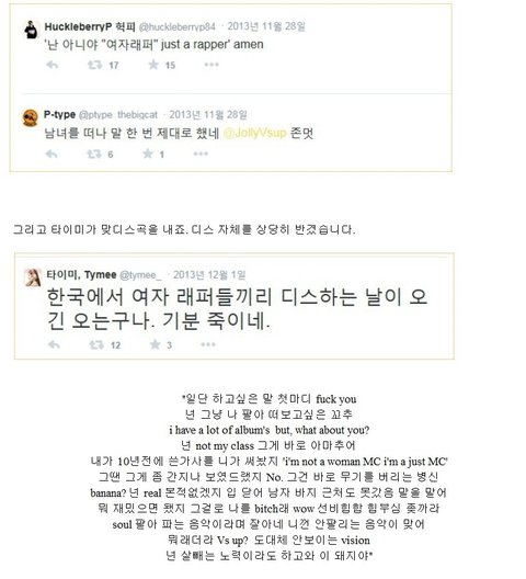 타이미가 디스전시작한답시고 시장바닥 욕만 주르륵 늘어놓고 돼지년이라고 디스한거말고는