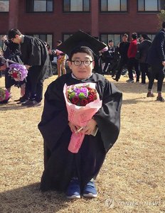 그는 창원대 학위수여식에서 가장 키가 작은 졸업생이었지만 그 누구보다 큰 축하를 받았다.