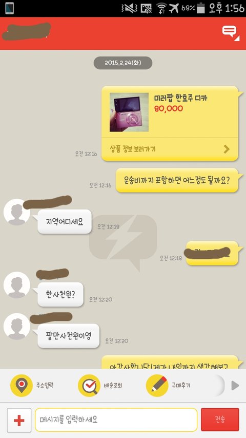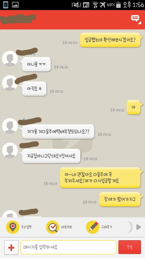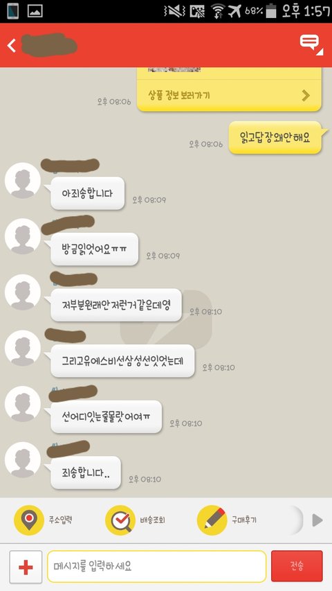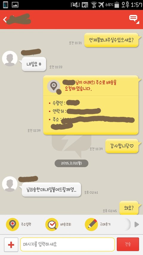 여기까지가 방금 있었던일이구요 다음주 수요일까지 택배가 올지도 의문입니다