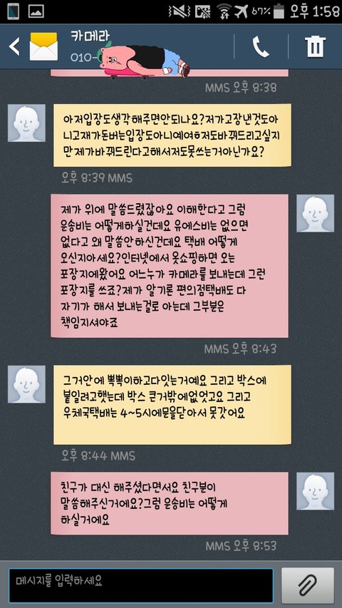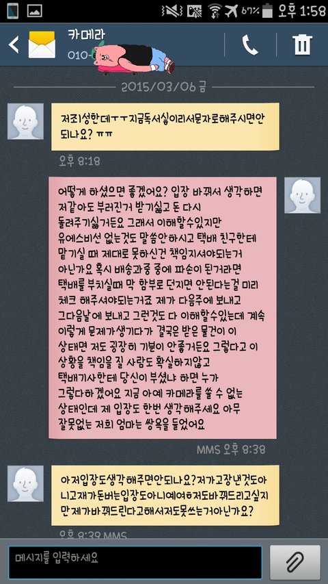 문자 답장에는 택배보내는걸 착불로 하겠다고 했습니다 이젠 어이가없어서 웃음만 나오더라구요