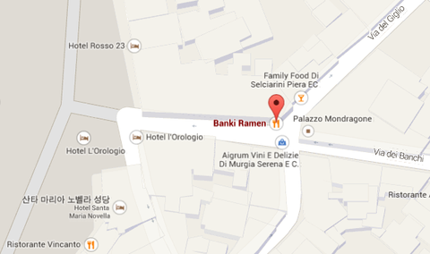 피자랑 파스타만 먹기도 질리던 차였고 뭔가 뜨거운 게 먹고 싶다 라는 생각을 하던 중 산타 마리아 노벨라 성당 에서 산타 마리아 델 피오레로 가는 길목 가운데에 일본 라멘가게가 있더라구요?