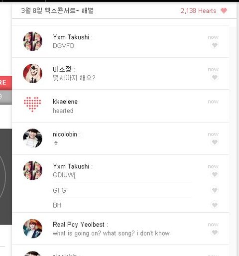 사람들 수 옆에 하트라 써있잖아 그래서 저 사람들한테 댓글 그만 달라는거임 생중계 힘들다고 댓글 많이 달리면 버벅 거리니까