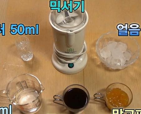 믹서기// 얼음 // 토닉워터 // 물// 뽕주 // 망고 파인잼을 준비해주세요^^