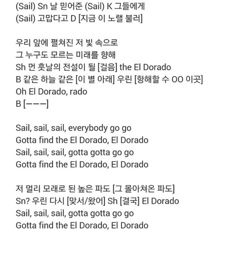 얘들아 엘도라도 가사 이거라고
