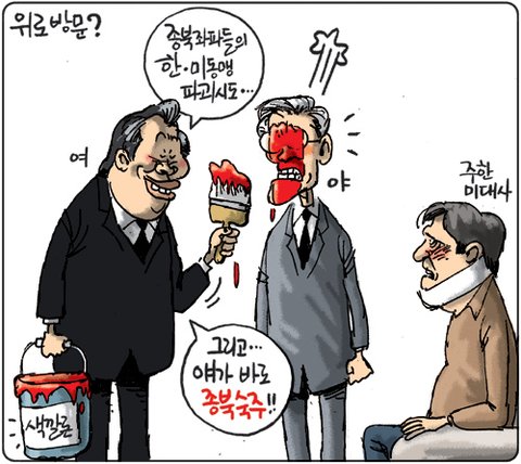 리퍼트 문병 간 김무성 - 문재인 ‘종북 공방’