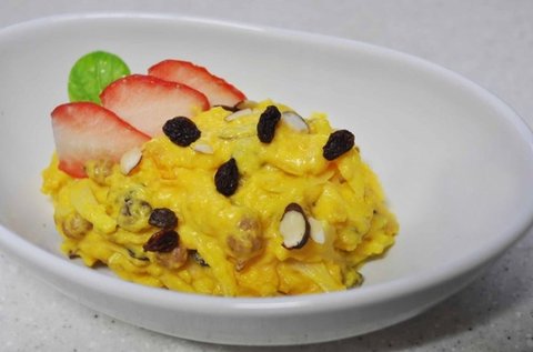 껍질 벗긴 단호박을 속만 발라 찜기에 쪄서 으깬 다음에