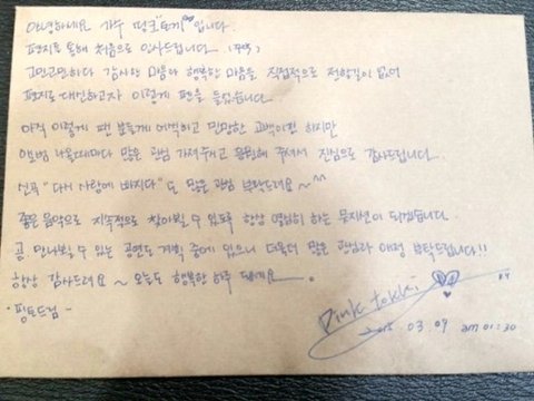 얼굴 공개해주길 바랬는데ㅠㅠ아쉽게도 손편지와 싸인만 공개함