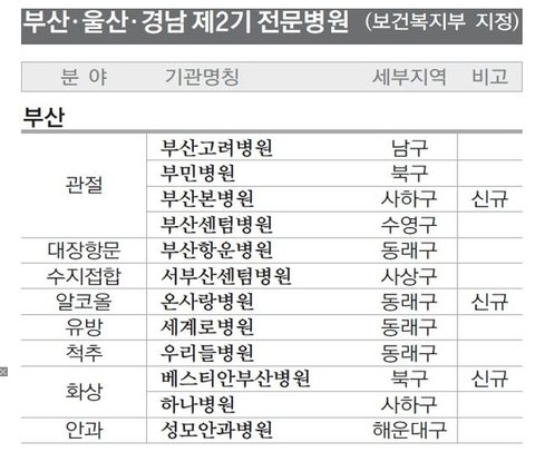관절 - 부산고려병원, 부민병원, 부산본병원, 부산센텀병원 (관절이 가장 많네요~~)