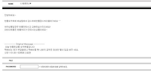 불안해서 일단 게시판에 물품에 하자가 있으니 반품 처리해달라고 써놧어요