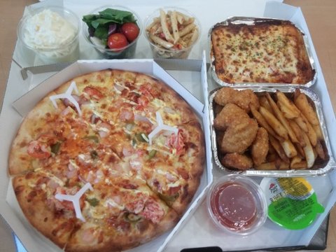 피자, 치킨, 파스타, 포테이토, 후레쉬 랜치 샐러드, 이탈리안 팬네 샐러드, 고구마 샐러드ㅜㅜㅜ