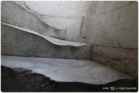 <피사의 사탑 올라 가는 계단 사람들이 많이 걷는 중심쪽으로 계단이 닳아 있다 지금은 사탑이 오른쪽으로 기울어져 있다는 Photo by JS Canon EOS 600D>