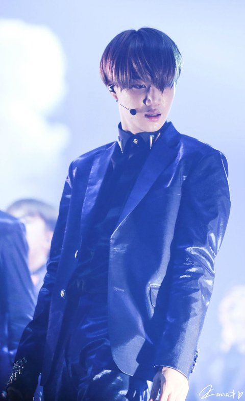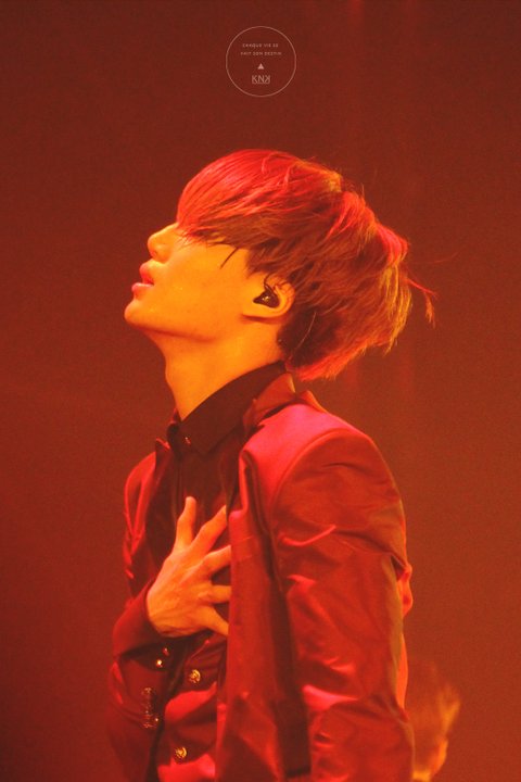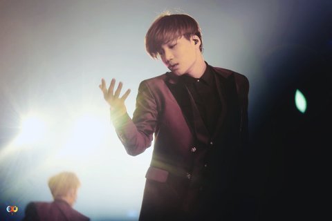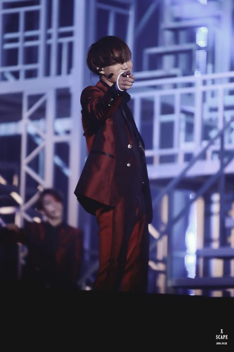 The EXO’luXion 버건디수트입은 카이