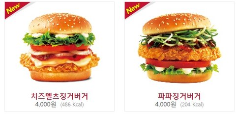 치즈멜츠징거버거랑 파파징거버거인데요