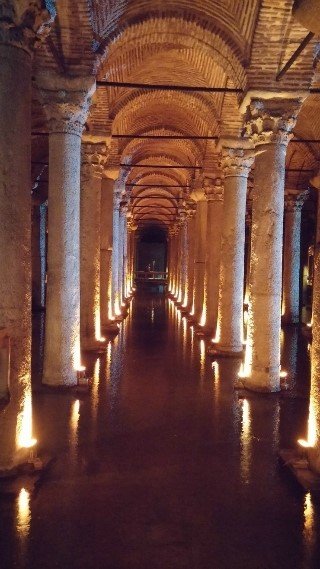 유스티니아노스 황제는 이곳을 8m 깊이로 파고 336개의 기둥을 세우고 지붕을 얹어 지금의 지하수조로 만들었다.