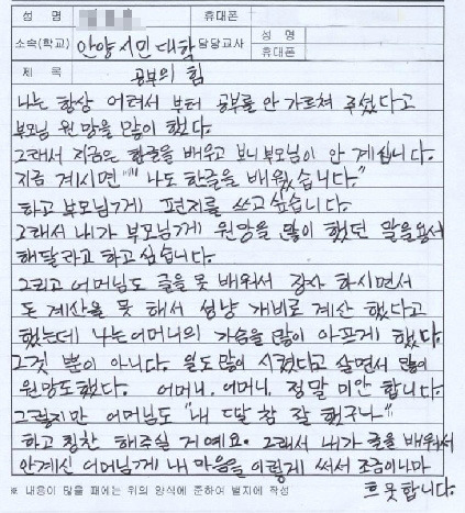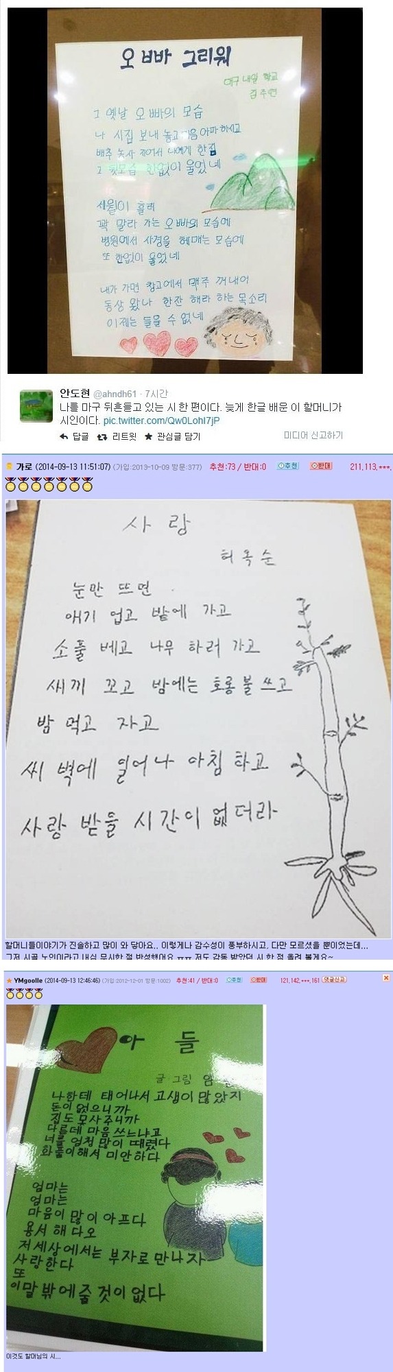 한글을 처음 배운 할머니들의 시