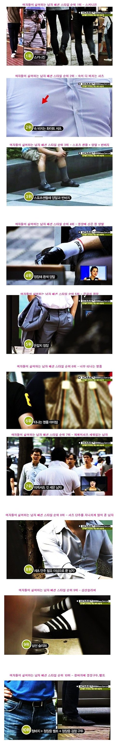 여자들이 극혐해하는 남성패션 BEST10