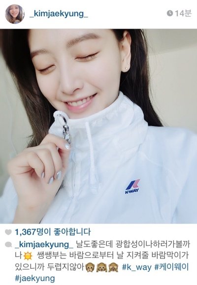 지금 실시간으로 좀전에 재경언니가 인스타그램 업데이트를 하였네요~