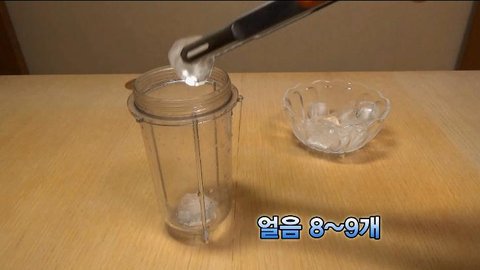 1. 믹서기에 얼음을 8-9개 넣어줍니다 ~