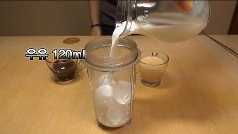 2. 우유 120ml를 믹서기에 부어주세요!!