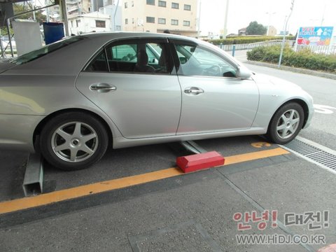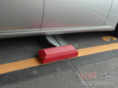 정답 발표 : 주차가 되면 위와 같이 차량이 나가지 못하게 막는 장치가 세워진다. 그리고 무인 정산기로 돈을 내고 정산을 해야 차를 뺄 수가 있다. 첫번째 사진을 보면 오른쪽에 정산기가 있는 것이 보인다. 대전에서는 아직 본 적이 없는데, 한국의 다른 곳에 이미 있다면 쏘리!