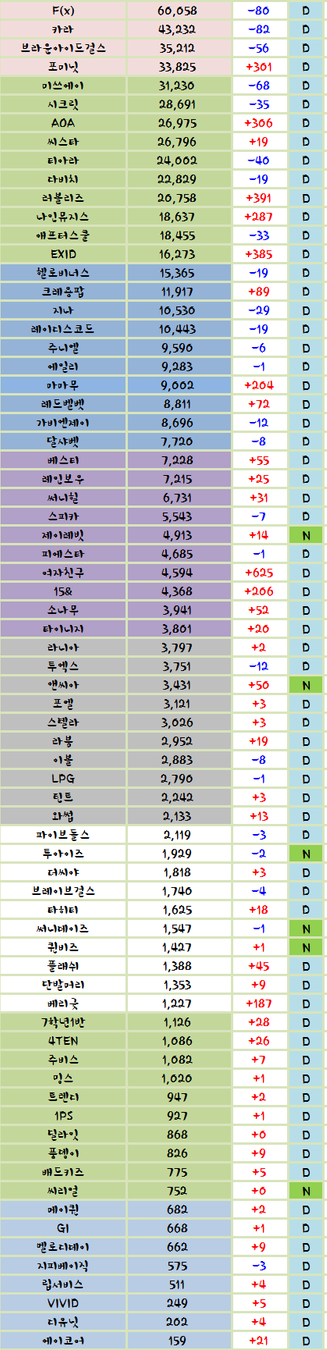 소시는곧해체,에핑은 틈새공략으로 거저,투매미는 뽕 그니까 이게 순위아님?