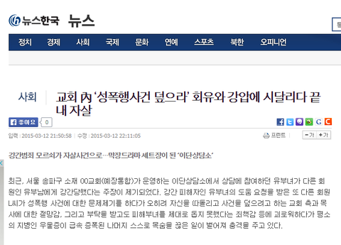 강간사건을 은폐하고자 L씨를 따돌리고 강압적으로 회유하려 했던 00교회(예장통합) 이단상담소에 대한 정확한 진상조사와 신속히 이루어지길 바랍니다.