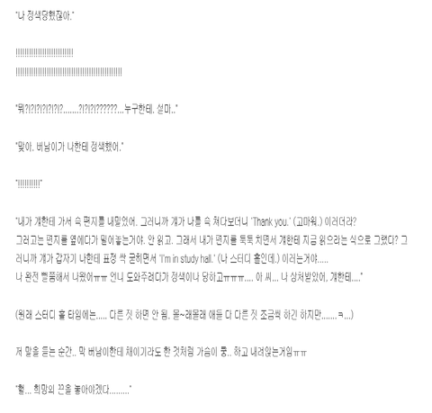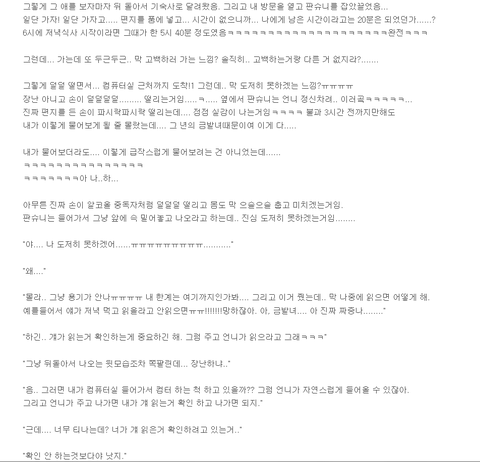 미쿡언니남카페에공개해달라고 또 글 보내고 왔으니 너무 화내지 마시고 일단 이야기는 제가천천히 ..느리게..하지만..분량은..한번에..많이?..올려보도록노력하겠습니다. 여러분 잘자요!!!!![]()