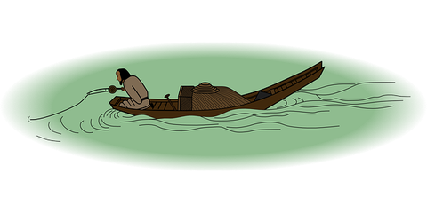 어떤 할아버지가 혼자 서서 막대기에다가 실을 매달아 웅덩이에서 위아래로 흔들고 있었다.