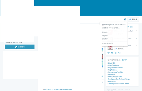 어떤 글 보니까 저기 팔로우 옆에 보이는 ㅂㄹㄹㅈ0326님한테 트윗하기 눌러서 멘션이란걸 보내래ㅠㅠ