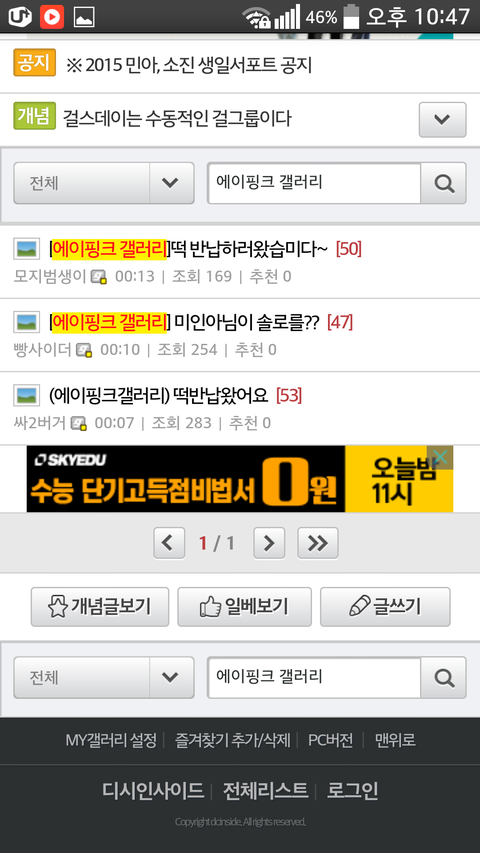 걸스데이갤러리,에이핑크갤러리 팬들 수준;;