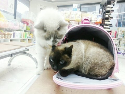 살포시..이동장 안에 들어갔다는 샴엄마.